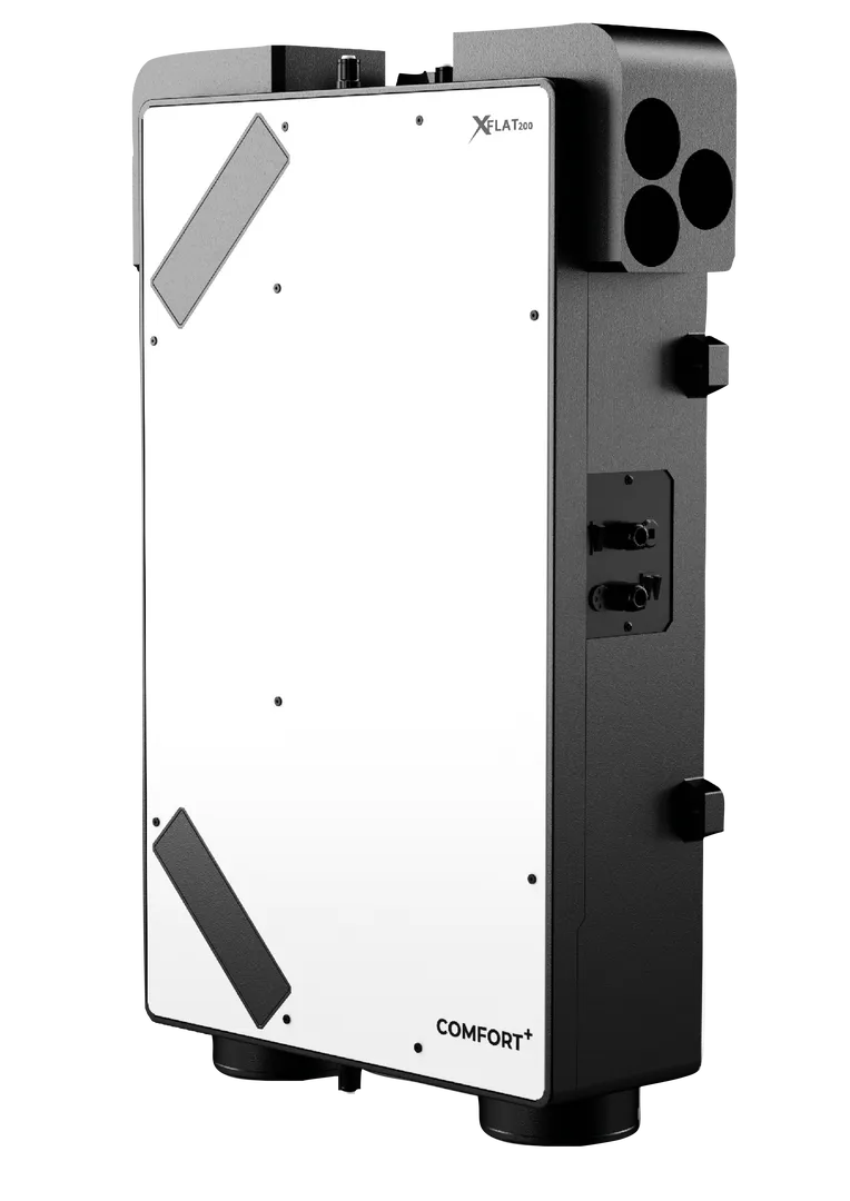 Xflat200 entalpinis rekuperatorius . 200 m3/h oro našumas (arba 150 m3/h) tinka vėdinti butus ir mažesnius šeimos namus. Dėl įrenginio konstrukcijos jį galima montuoti ir po lubomis, ir vertikaliai ant sienos. Dėl minimalaus aukščio jį galima montuoti ant įprastinio aukščio lubų, nesudarant kliūčių. Didžiausias jo privalumas - universalumas ir pajungimo lankstumas.