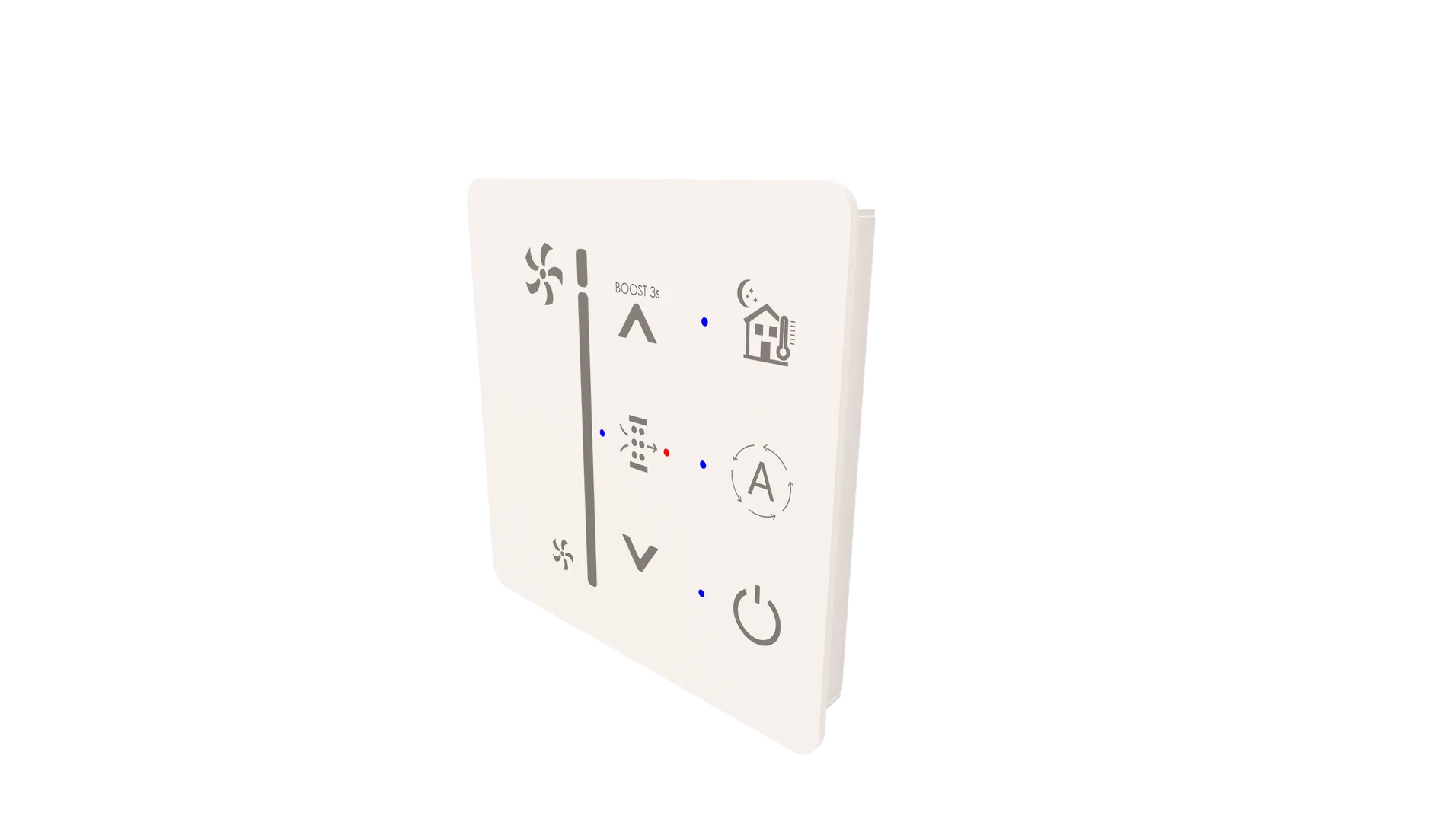ESSENTIAL valdymas yra supaprastinta rekuperatoriaus valdymo versija. Nepaisant to, jis užtikrina pagrindines ir visiškai pakankamas funkcijas. Dviem potenciometrais galima nustatyti reikiamą srauto greitį ir naktinio vėsinimo (bypass) laiką. Valdiklis prie įrenginio jungiamas 10 m kabeliu.